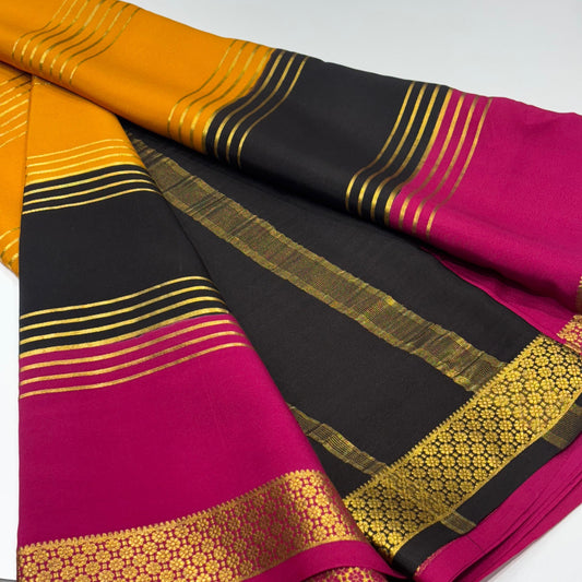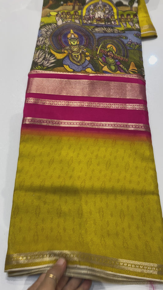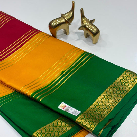 Find the best collection of Mysore Silk Sarees online at Rajsilkvilla. Choose from a wide range of Chiffon, Georgette, and Crepe sarees. Shop now and add elegance to your wardrobe.