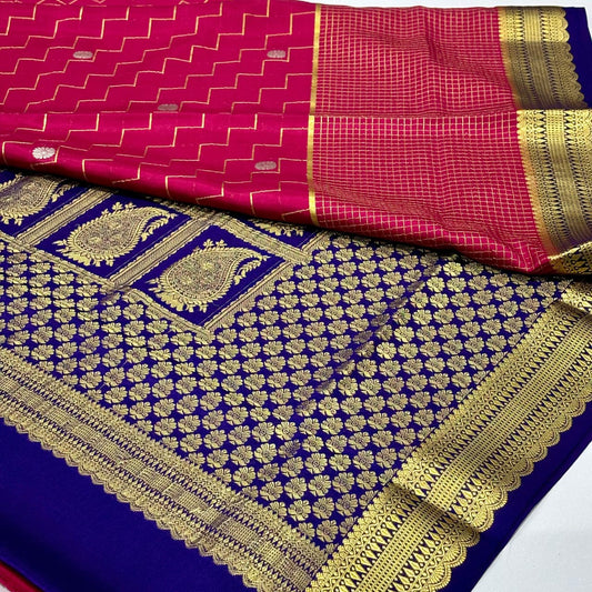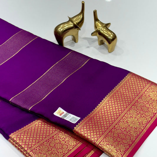 Welcome to Raj Silk Villa, your trusted online destination to buy the latest designer Mysore silk sarees in India. With a focus on fine quality, we offer a captivating collection of Mysore silk sarees that exude elegance and grace. Each saree is meticulously crafted with attention to detail, ensuring exceptional quality and a luxurious feel. Explore our catalog to discover the latest trends in Mysore silk sarees, perfect for weddings, festivals, and special occasions. Shop with confidence at Raj Silk Villa and elevate your style with our exquisite collection of Mysore silk sarees, adding a touch of sophistication to your ethnic wardrobe.