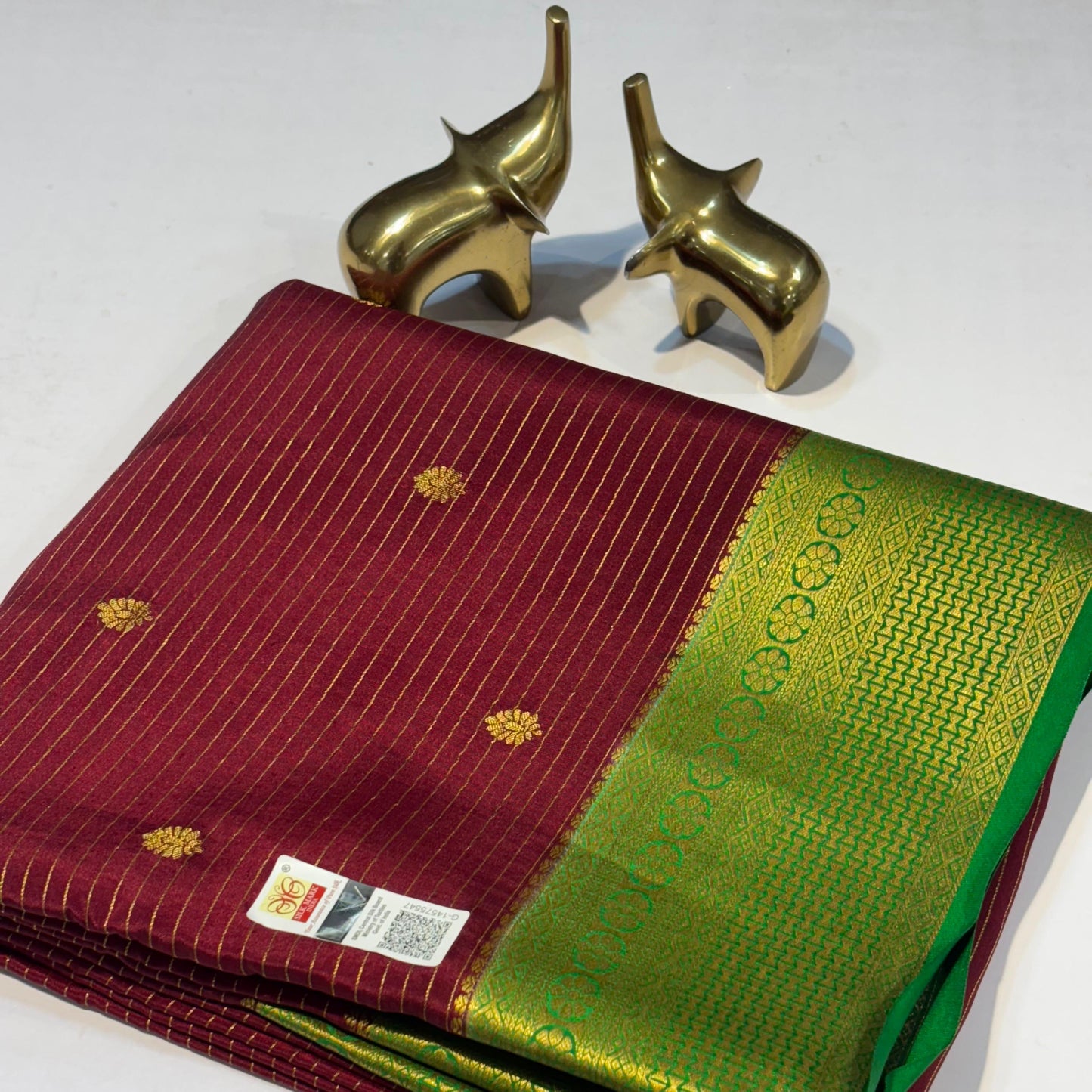 हम गुणवत्ता पर गर्व करते हैं, यही वजह है कि हमारी साड़ी सिल्क मार्क सर्टिफिकेट के साथ आती है। यह प्रमाणन रेशम की प्रामाणिकता की गारंटी देता है, जिससे आपको मन की शांति और आपके निवेश के लिए उत्कृष्ट मूल्य मिलता है।