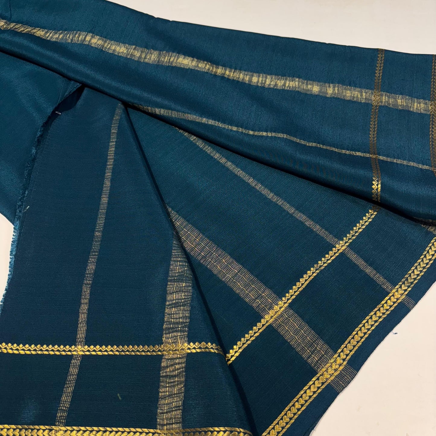 इस साड़ी को सबसे अलग बनाने वाली बात है इसकी प्रभावशाली 100 ग्राम KSIC ग्रेड मोटाई। यह न केवल टिकाऊपन सुनिश्चित करता है बल्कि एक समृद्ध, भव्य एहसास भी देता है। साड़ी पर जटिल चेक डिज़ाइन और भारी बेंटेक्स बॉर्डर के साथ, यह परंपरा और आधुनिकता को पूरी तरह से संतुलित करता है।