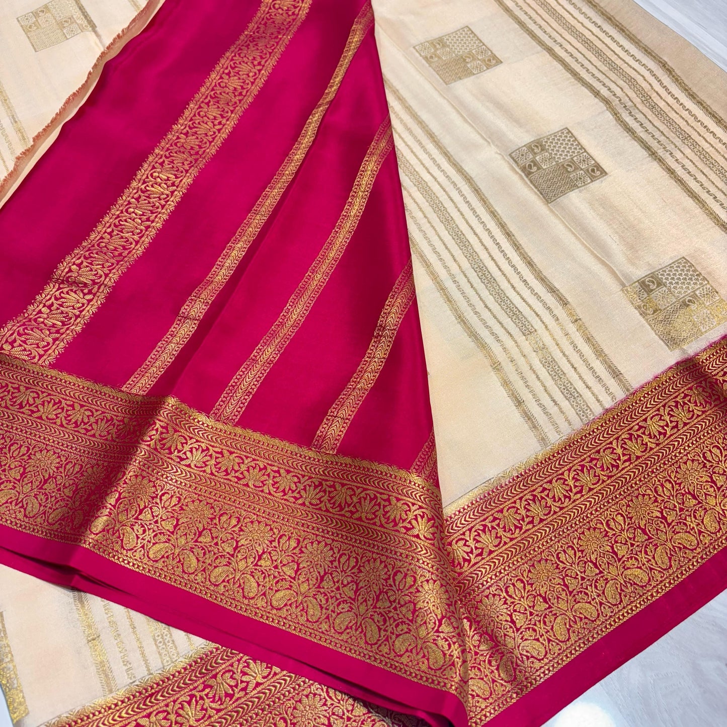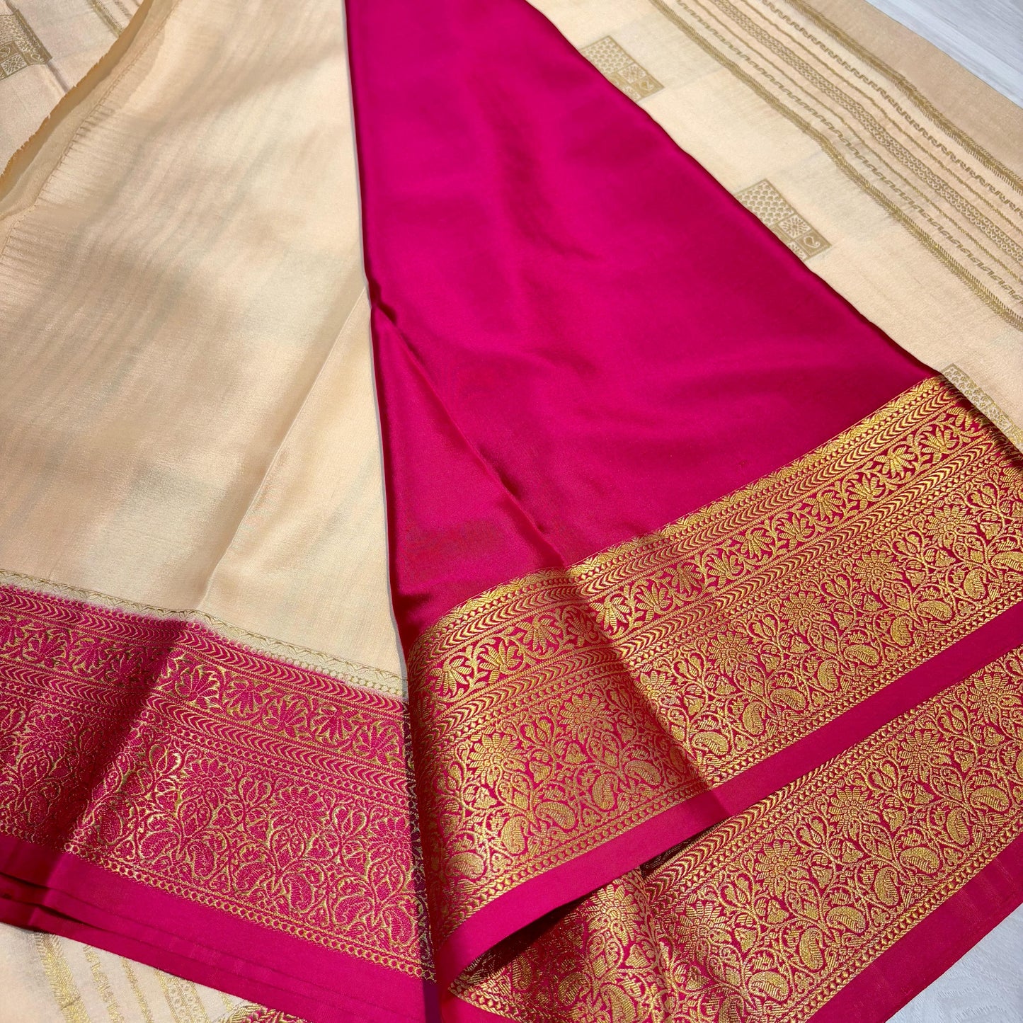 - Authentic Pure Mysore Silk – Smooth, rich in texture, and known for its durability.
