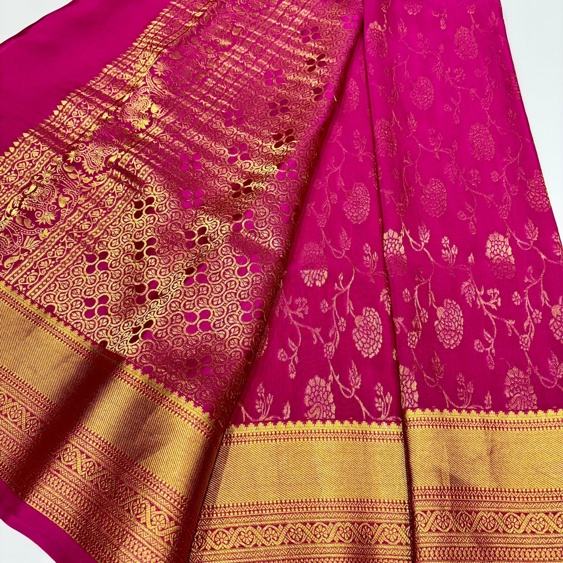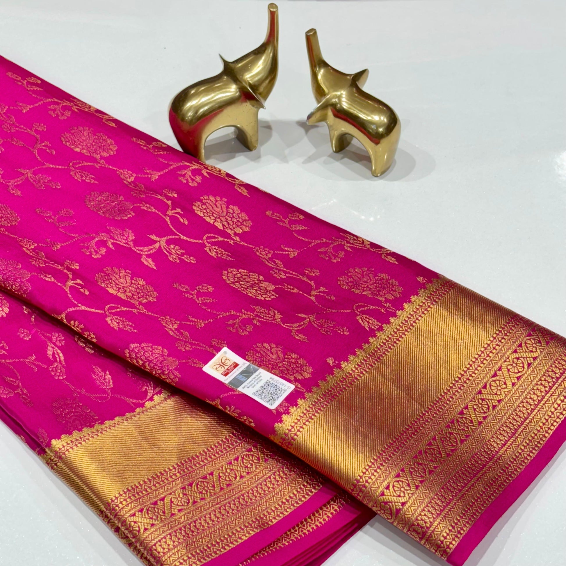Что действительно отличает это сари, так это его впечатляющая толщина. Сари Pure Mysore Silk Saree весом 100 граммов имеет толщину класса KSIC, что обеспечивает не только долговечность, но и ощущение богатства и роскоши. Поэтому вы можете быть уверены в его долговечном качестве и великолепной драпировке.